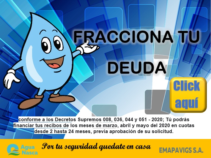La Entidad Prestadora de Servicios "EMAPAVIGS" S.A.C. presenta su Portal Web en cumplimiento a la Ley de Transparencia y con la convicción de facilitar el acceso a la información actualizada a nuestros usuarios y usuarias de la ciudad de Nasca y Vista Alegre.