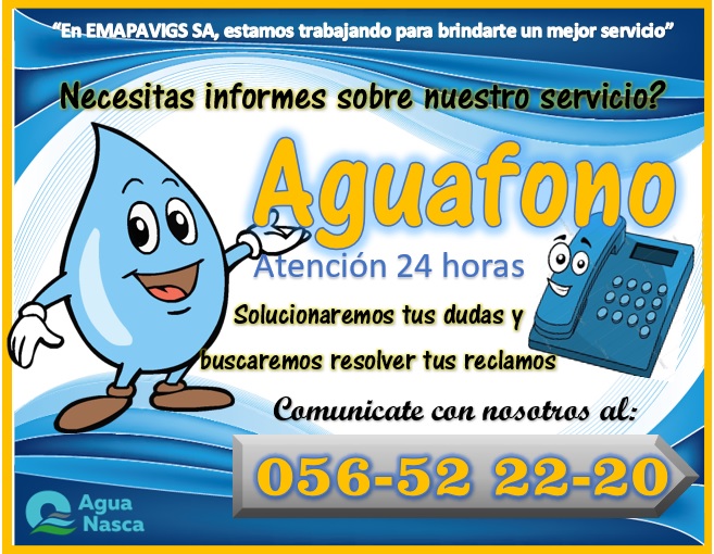 La Entidad Prestadora de Servicios "EMAPAVIGS" S.A.C. presenta su Portal Web en cumplimiento a la Ley de Transparencia y con la convicción de facilitar el acceso a la información actualizada a nuestros usuarios y usuarias de la ciudad de Nasca y Vista Alegre.